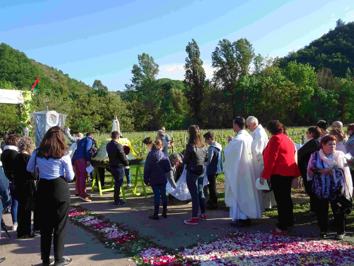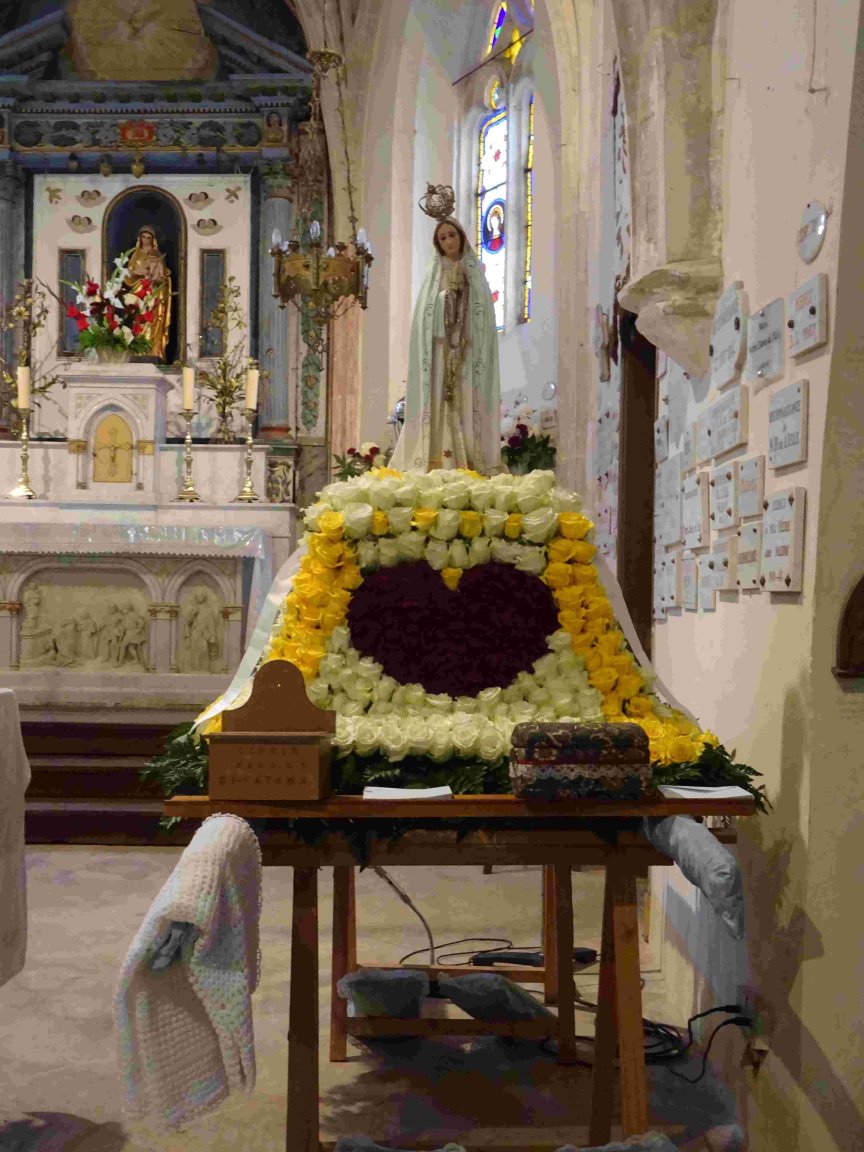 Cette année le soleil était au rendez-vous dans l’écrin de verdure de Notre dame de l’ile pour fêter les apparitions de Notre dame De Fatima avec les 40 ans de ‘’ l’Associaçäo Nossa Senhora de Fatima. ’’ Et nous étions nombreux en union avec la communauté portugaise à chanter et prier Notre Dame de Fatima . les pères Shane et Jean-Marie, présidaient cette messe suivie de la procession en l’honneur de la vierge sur un chemin parsemé de pétales de roses.. Une chorale venue du Portugal animait cette célébration . Leurs voix du sud, leurs chants et la ferveur des prières de l’assemblée nous amenaient à communier et à partager leur élan de foi :